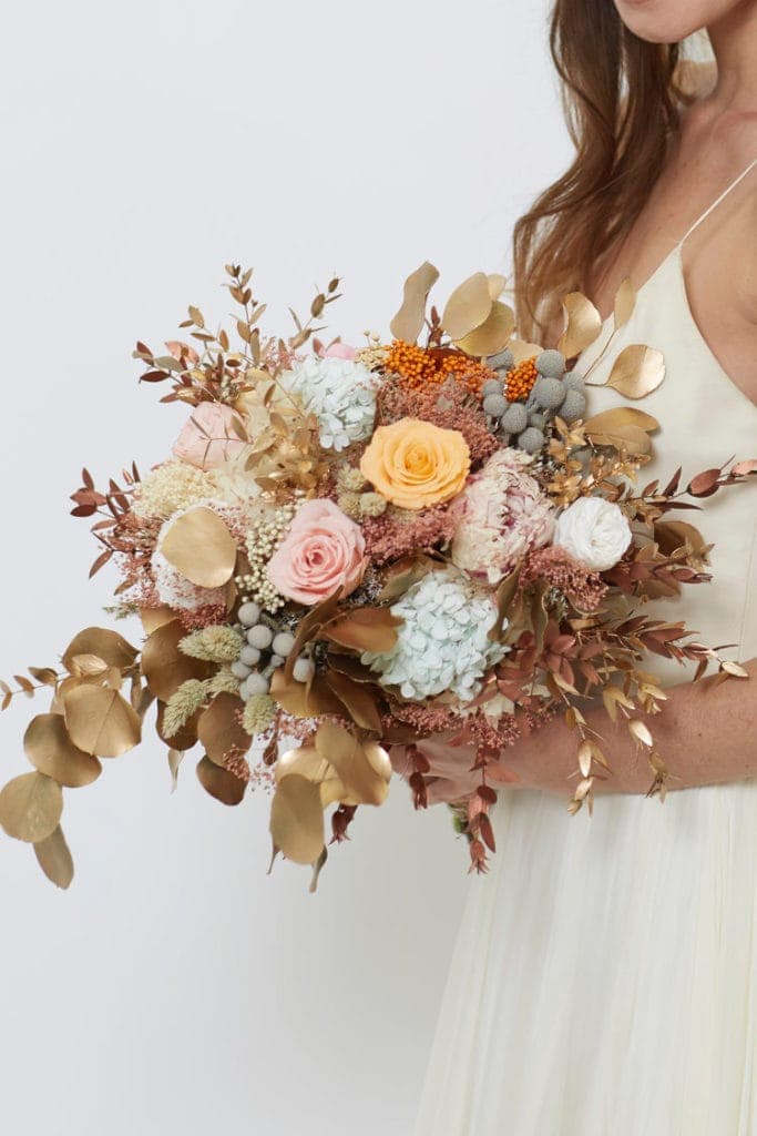 Une composition florale en fleurs séchées et stabilisées par la créatrice anglaise Sandra de chez Sophie and Luna