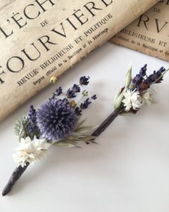 Le maître mot des dernières tendances florales : légèreté et finesse. Les accessoires subtils et délicats vont littéralement remplacer les grosses couronnes XXL des années passées. En effet, on voit de plus en plus de jolis peignes, barrettes et demi couronnes. Des créations qui ressemblent plus à des bijoux qu’à des compostions florales. On s’attend à voir de nombreux accessoires fleuris tel que les ceintures et bracelets à offrir à la maman des mariés et à son cortège. Les boutonnières des hommes se parent de fleurs de plus en plus originales, plantes grasses, fleurs séchées, brins de céréales et autres trouvailles florales.