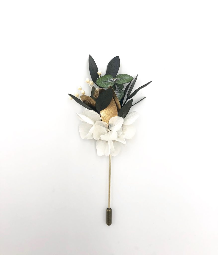 L’association des deux formes rend particulièrement bien, et offre un accessoire bien cadencé et élégant. L’ajout du classique hortensia blanc fonctionne à merveille, et nous offre un peigne personnalisé très réussi.