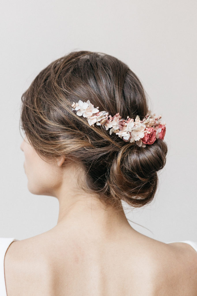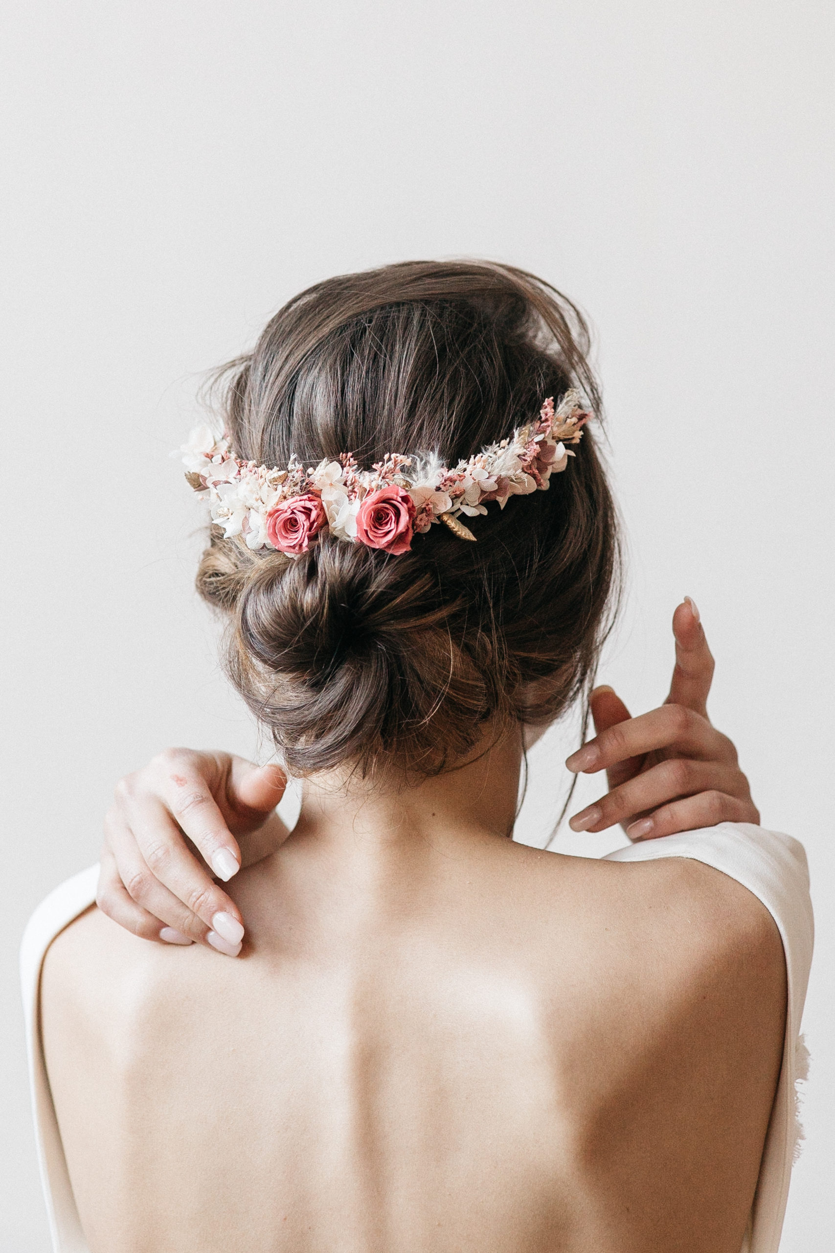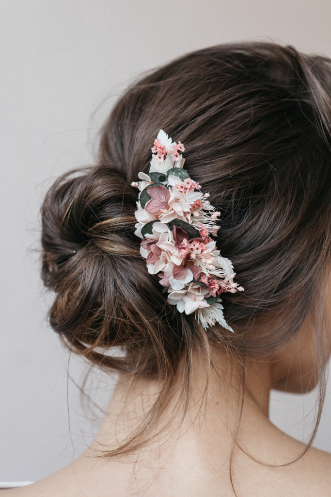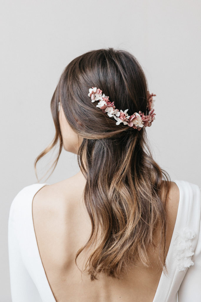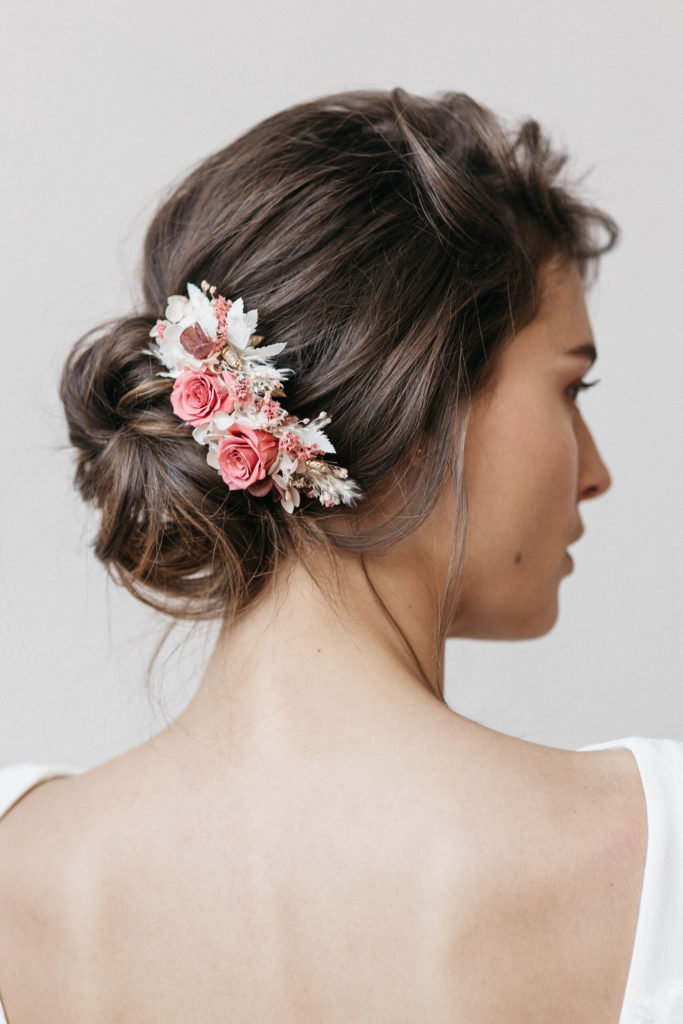 Fini le temps d’un accessoire en fleurs vu et revu, trop imposant, manquant de finesse ou de subtilité. Il est désormais possible pour les futures mariées de s’imaginer porter une couronne ou un peigne en fleurs naturelles stabilisées, qui soit confectionné comme un bijou, dans le détail et la délicatesse, offrant ainsi une alternative romantique et contemporaine aux traditionnels diadèmes ou pièces d’or et d’argent.