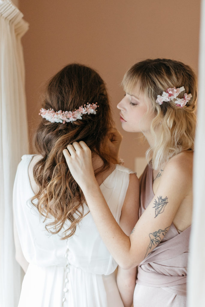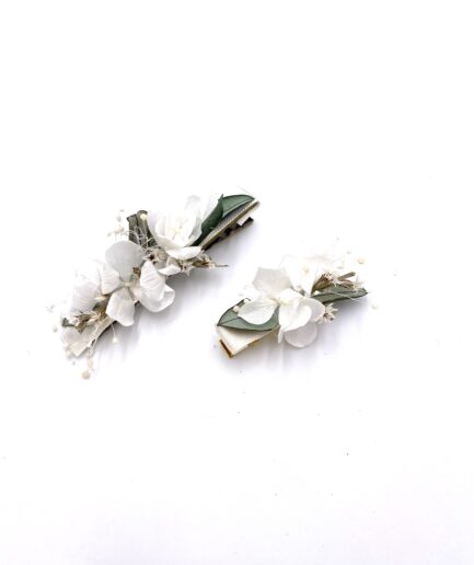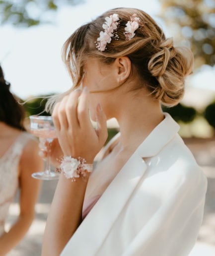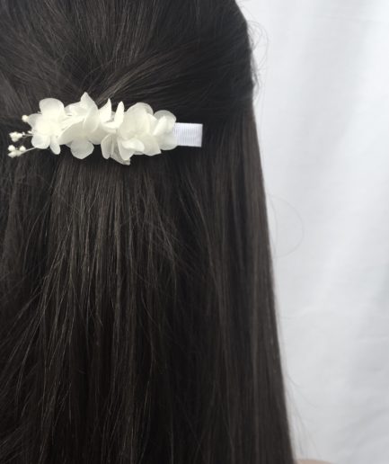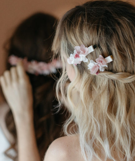 La petite barrette est un accessoire pratique pour habiller les demoiselles d”honneur, ses invitées, et ses proches, car elle se fixe facilement dans les cheveux, peu importe la coiffure. C’est aussi une très bonne option pour les petites filles !