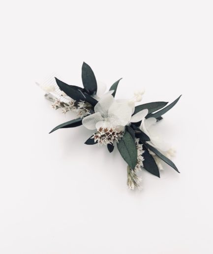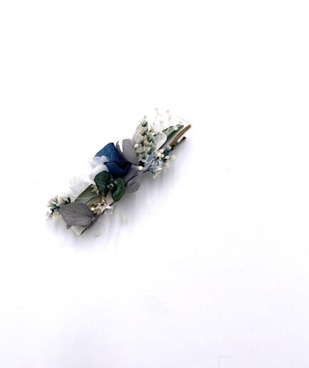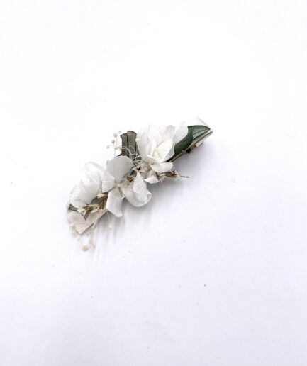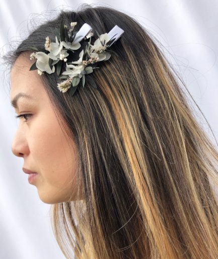 Comme nos autres accessoires pour la mariée, cette barrette se compose de fleurs 100% naturelles durables, stabilisées, qui offrent des avantages en matière de conservation, allant de plusieurs mois à plusieurs années. Pratique pour commander quelques mois avant, et vous pourrez les porter lors d’autres jolis évènements !