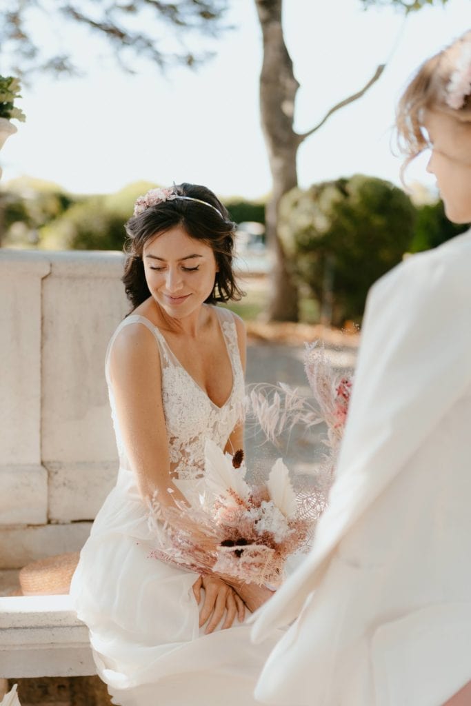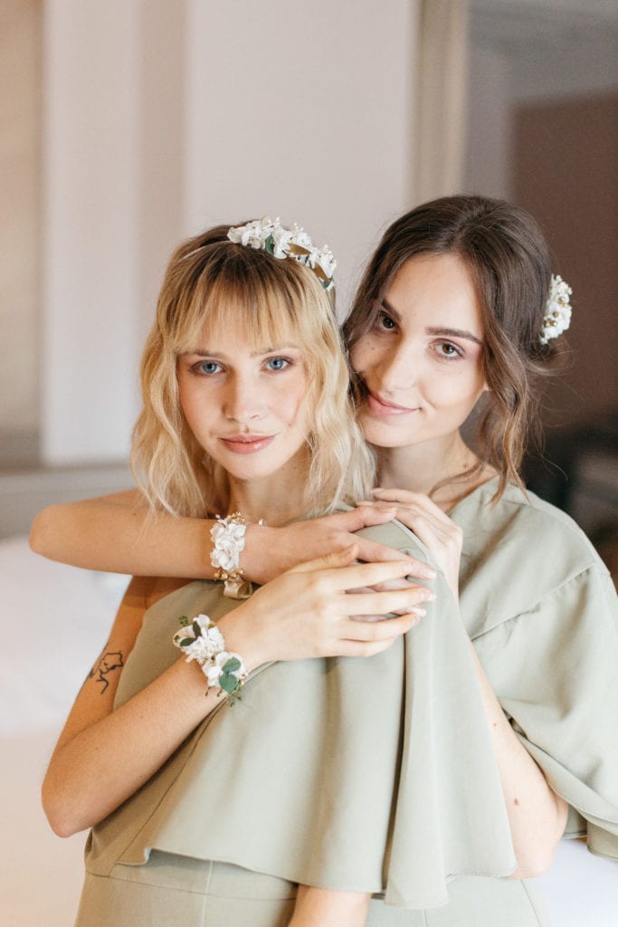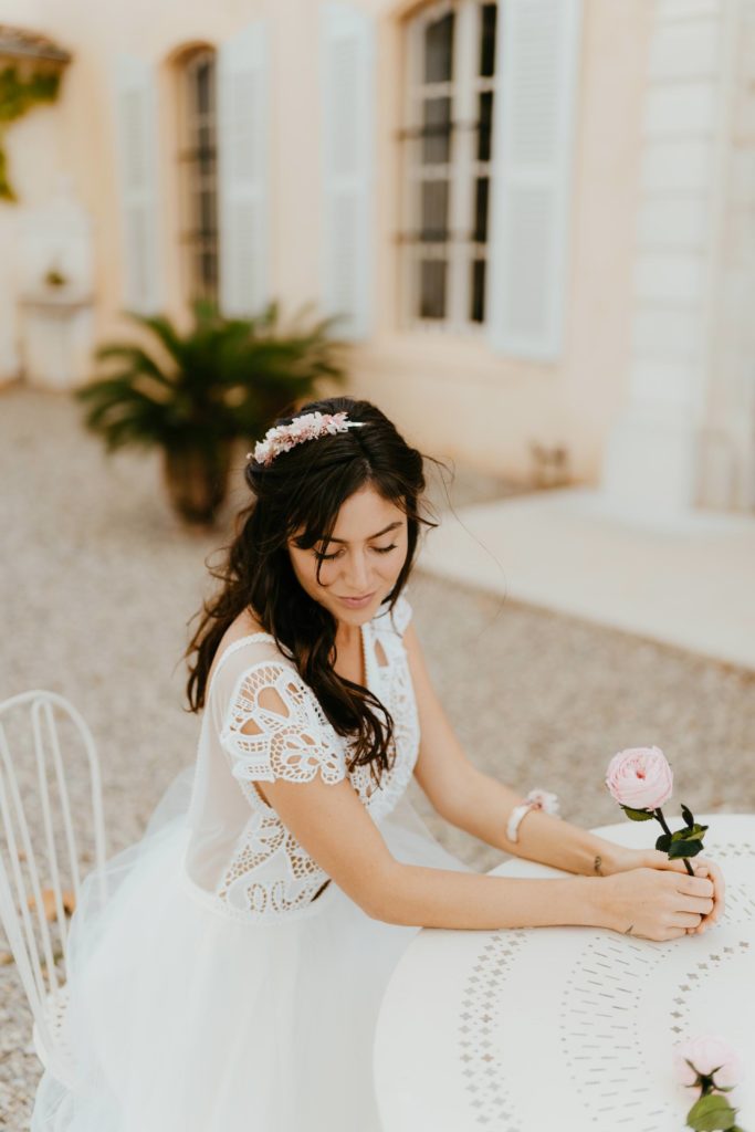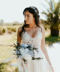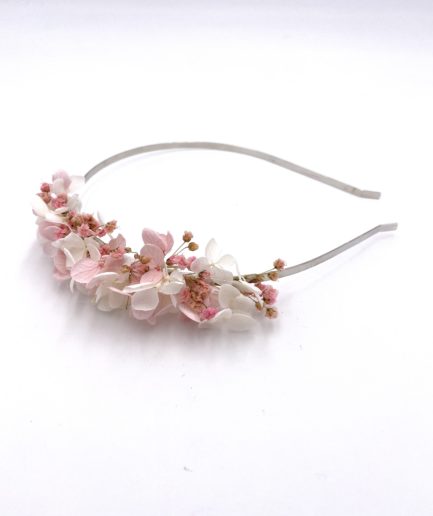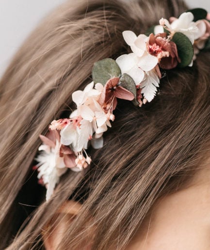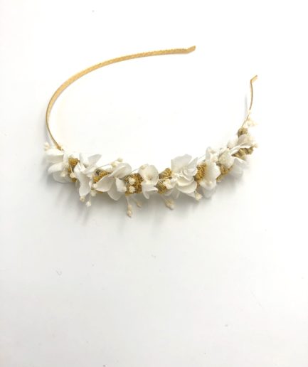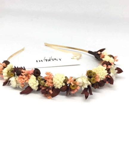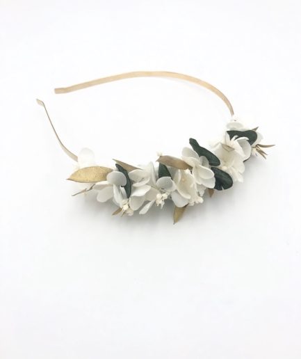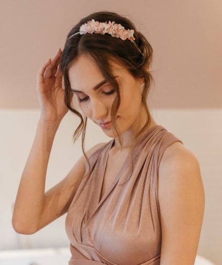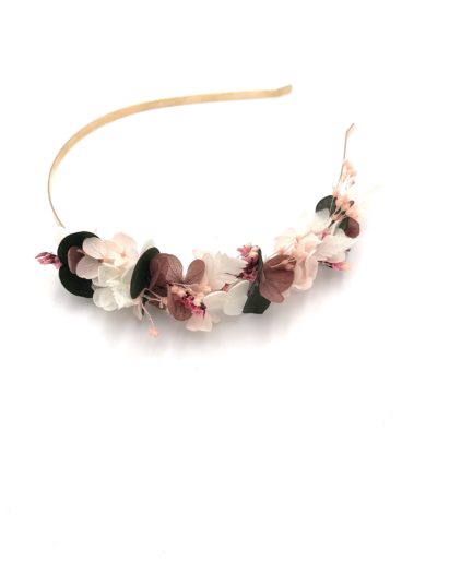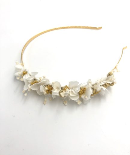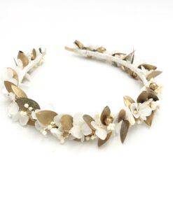 Les headbands sont réalisés à la main, sur des bases en métal doré ou argenté, apportant cette touche de bijou chic et délicat à la mariée. Nos headbands de mariage en fleurs se placent très facilement et de différentes façons.