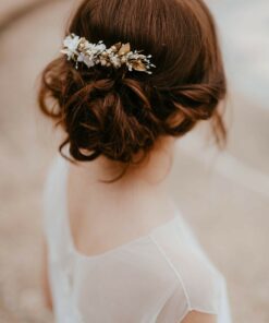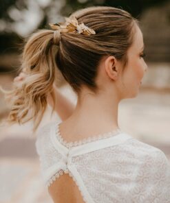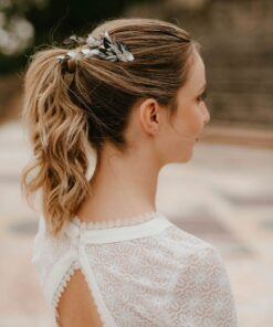 Le peigne est l’accessoire délicat par excellence, qui amène une légèreté et une jolie touche fleurie à votre tenue. C’est un accessoire à la fois indémodable et dans l’air du temps, particulièrement pratique à placer et enlever. Si vous recherchez un bijou de tête avec un côté fleuri, nos peignes de mariage sont particulièrement conseillés pour maintenir votre chignon et le mettre en valeur.