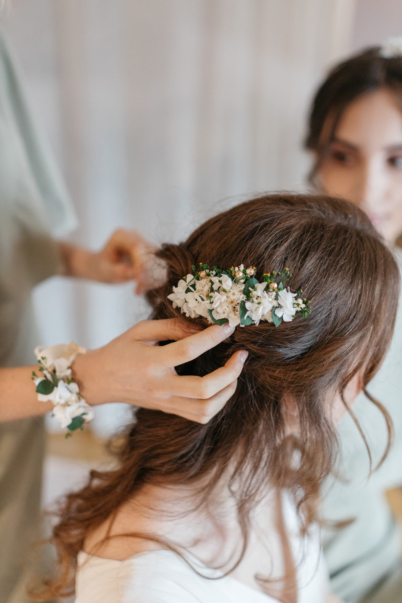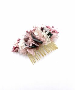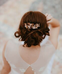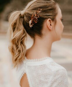 Nos peignes de mariage en fleurs se déclinent comme nos autres accessoires de cheveux en quatre gammes, avec des styles tantôt romantique, bohème, chic ou encore bucolique. Comme toutes nos créations, les peignes de mariage sont en fleurs séchées et stabilisées, et se conservent des années. N’hésitez donc pas à acheter plusieurs semaines avant votre mariage pour faire des essayages de coiffure sans stress, et vous pourrez garder le peigne comme souvenir inoubliable longtemps après le grand jour !