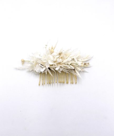 La gamme Auguste rassemble des accessoires en fleurs séchées aux doux tons de fin d’été, lorsque les herbes et les champs sont dorés et séchés par le soleil d’août.