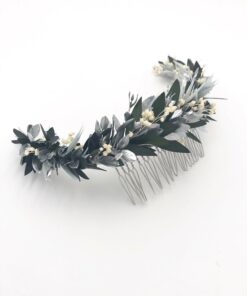 La gamme Turquin fait partie de la collection Orichalque, qui décline une série d’accessoires aux tons dorés, cuivrés et argentés, en clin d’oeil à un imaginaire antique, très chic et lumineux. Turquin se distingue par ses doux tons bleutés et argentés, étant exclusivement composé de fleurs séchées et de fleurs stabilisées.