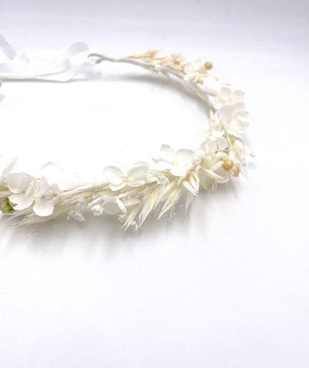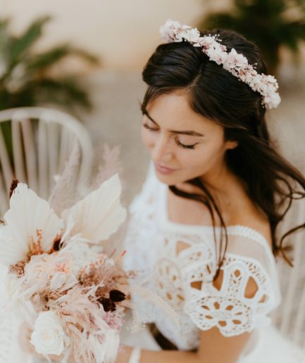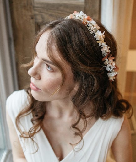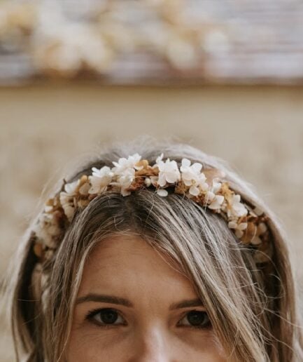 Nos couronnes de fleurs pour la mariée sont réalisées en fleurs naturelles séchées et stabilisées, à partir de fleurs françaises, et sont intégralement confectionnées en France, à Lyon.