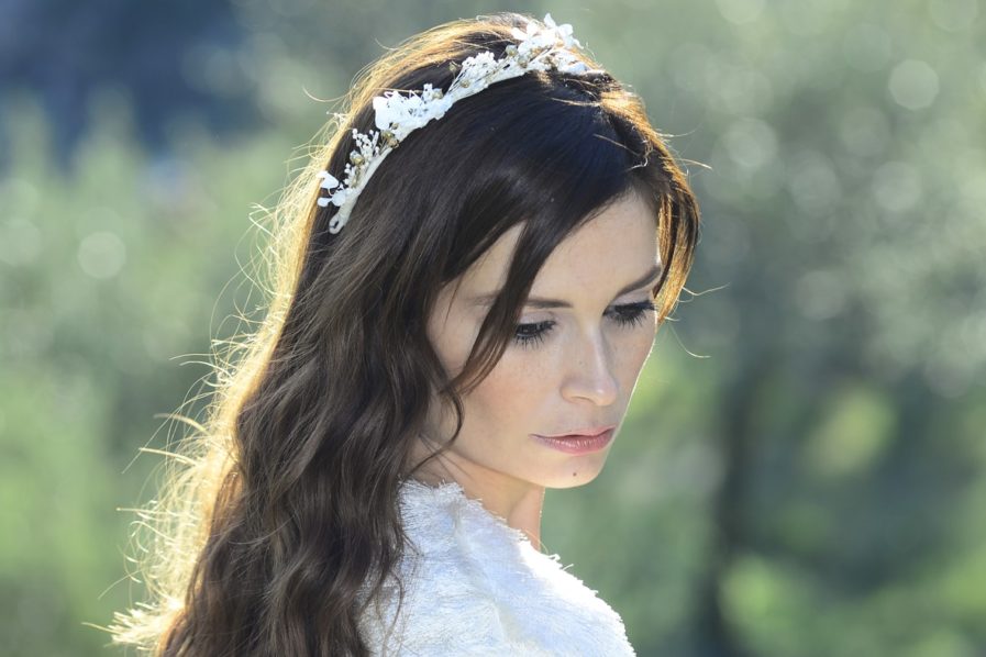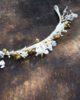 Cet accessoire de mariage s’adaptera à de nombreuses coiffures, mais il est particulièrement idéal pour magnifier un chignon décoiffé. Grâce à sa légèreté, il se place selon vos envies et met cette petite touche dorée dans vos cheveux. Il met ainsi en valeur le chignon et s’attache facilement grâce à deux petits trous placés aux extrémités, dans lesquels il suffit s’insérer des pics à chignon. La barrette de fleurs Aura s’associera avec un grand nombre de tenues : des robes simples et bohème pour son côté champêtre, mais aussi des créations plus sophistiquées pour son côté bijou amené par les billes de lin doré, et par la délicatesse du travail des fleurs.