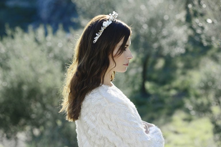 La barrette de mariage Aura, qui fait partie de la collection Couture, possède un côté très bijou avec ses brins de lin séché dorés, mélangés au blanc immaculé des fleurs d’hortensia stabilisées. Venant du latin Aura qui évoque une douce brise, cet accessoire transmet de la légèreté et de l’élégance. Très féminine, la barrette de mariage Aura insuffle un air de glamour et nous plonge dans un imaginaire antique qui sublimera la mariée chic et sophistiquée.