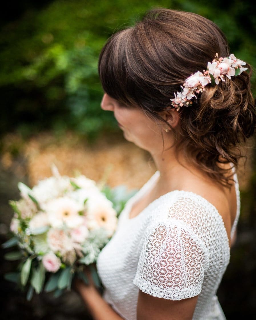 La barrette de fleurs Confetti peut se combiner avec différents accessoires de cheveux pour les demoiselles d’honneur, ses bracelets simples et élégants. Il est également très chic d’associer la mariée avec le marié ou encore les témoins et membres de la famille, grâce à la boutonnière de la même collection, ou pour un côté plus original, tenter la boutonnière broche Marcellin, qui ajoute un peu de végétal aux tons rosés.