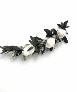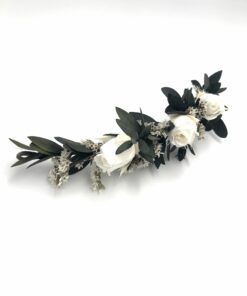 La barrette Confetti, comme tous nos accessoires et notamment nos couronnes de fleurs, est confectionnée minutieusement à la main en France, à Lyon, à partir de fleurs stabilisées. Cette caractéristique lui offre l’avantage de pouvoir se conserver pendant plusieurs années, à l’abri du soleil direct. Nous vous conseillons donc de commander l’accessoire de votre mariage en avance, afin de vous assurer des essayages en toute sérénité.
