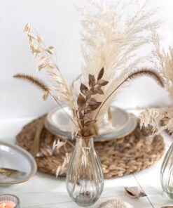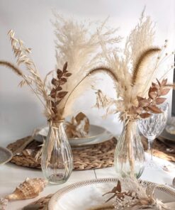 - Fleurs stabilisées naturelles (hortensias, eucalyptus, asparagus, palme)