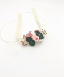 Les fleurs stabilisées qui le composent sont des roses de couleur rose pâle, des hortensias, et du gypsophile, ainsi que des feuilles d’eucalyptus baby blue.