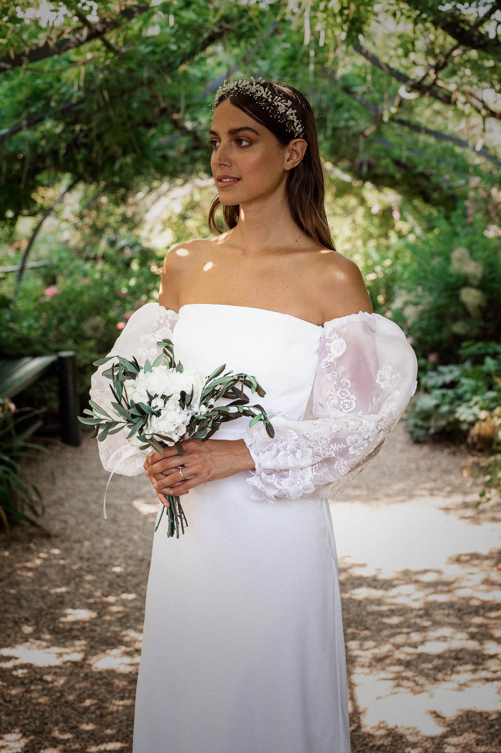 C’est une gamme d’accessoires en fleurs pour la mariée féminine et moderne, et ce bouquet en fleurs stabilisées Elaia est résolument chic et sophistiqué. Il nous plonge dans l’élégance des oliviers de Provence et leur simplicité.