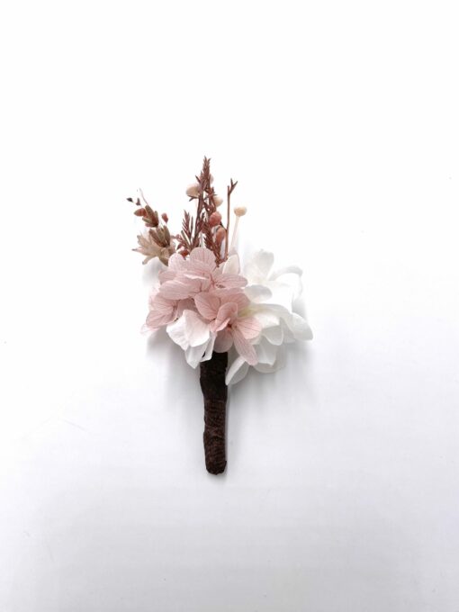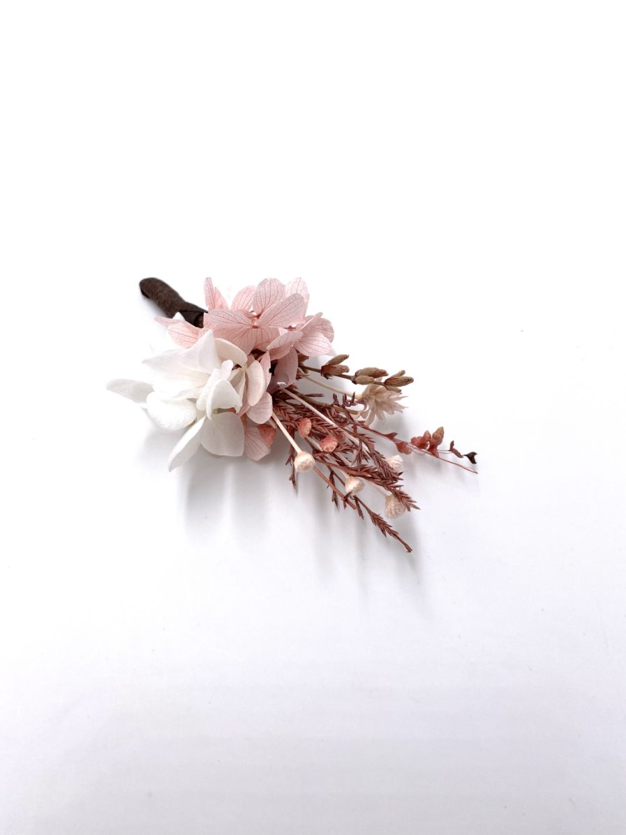 Comme nos autres accessoires pour la mariée, cette boutonnière se compose de fleurs 100% naturelles durables, stabilisées et séchées, qui offrent des avantages en matière de conservation, allant de plusieurs mois à plusieurs années. Pratique pour commander quelques mois avant, et pour le conserver ensuite en souvenir des années.