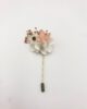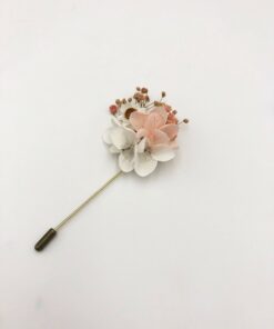 Le nom Candi fait référence à l’action de confire et cristalliser le sucre, et illustre parfaitement les petites touches sucrées de rose poudré et de blanc qui ornent la boutonnière en fleurs Candi. Elle est idéale pour les mariés souhaitant apporter une touche discrète et délicate à leur costume et ainsi s’assortir de façon élégante à leur moitié.