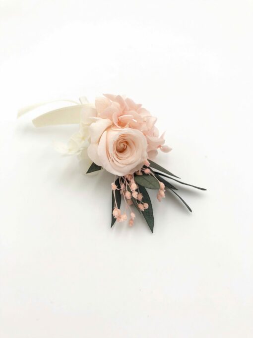 Ce bracelet se conserve plusieurs années grâce à ses fleurs séchées et stabilisées, et pourra ainsi être commandé à l’avance et gardé en souvenir ensuite.