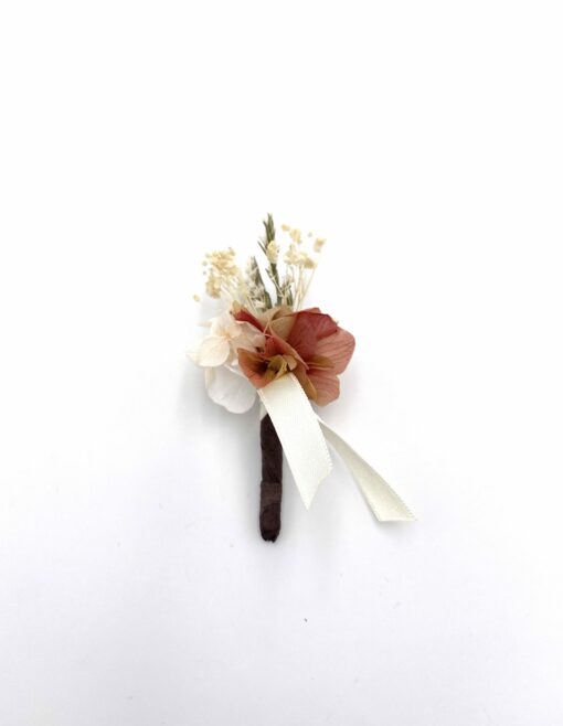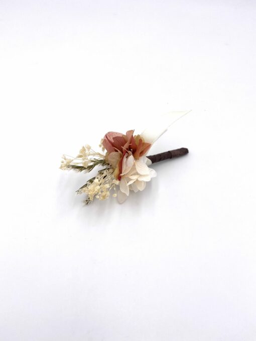 Comme nos autres accessoires pour la mariée, cette boutonnière se compose de fleurs 100% naturelles durables, stabilisées et séchées, qui offrent des avantages en matière de conservation, allant de plusieurs mois à plusieurs années. Pratique pour commander quelques mois avant, et pour la conserver ensuite en souvenir des années.