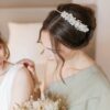 La collection Orichalque, qui se distingue par ses tons minéraux et lumineux, donne un effet des plus réussis lorsqu’elle associe plusieurs de ses accessoires, comme les boutonnières pour les mariés et les témoins, les bracelets pour les demoiselles d’honneur, avec la couronne de la mariée.