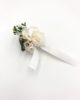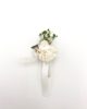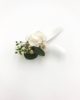 De style à la fois chic, champêtre et classique, la boutonnière du marié Minthé s’associera parfaitement à la mariée et sa couronne de la même gamme. Elle s’inscrit dans la tendance de tons vert et blanc mêlant le doré, pour des thématiques classiques et élégantes, qui misent sur la simplicité et la beauté des détails.
