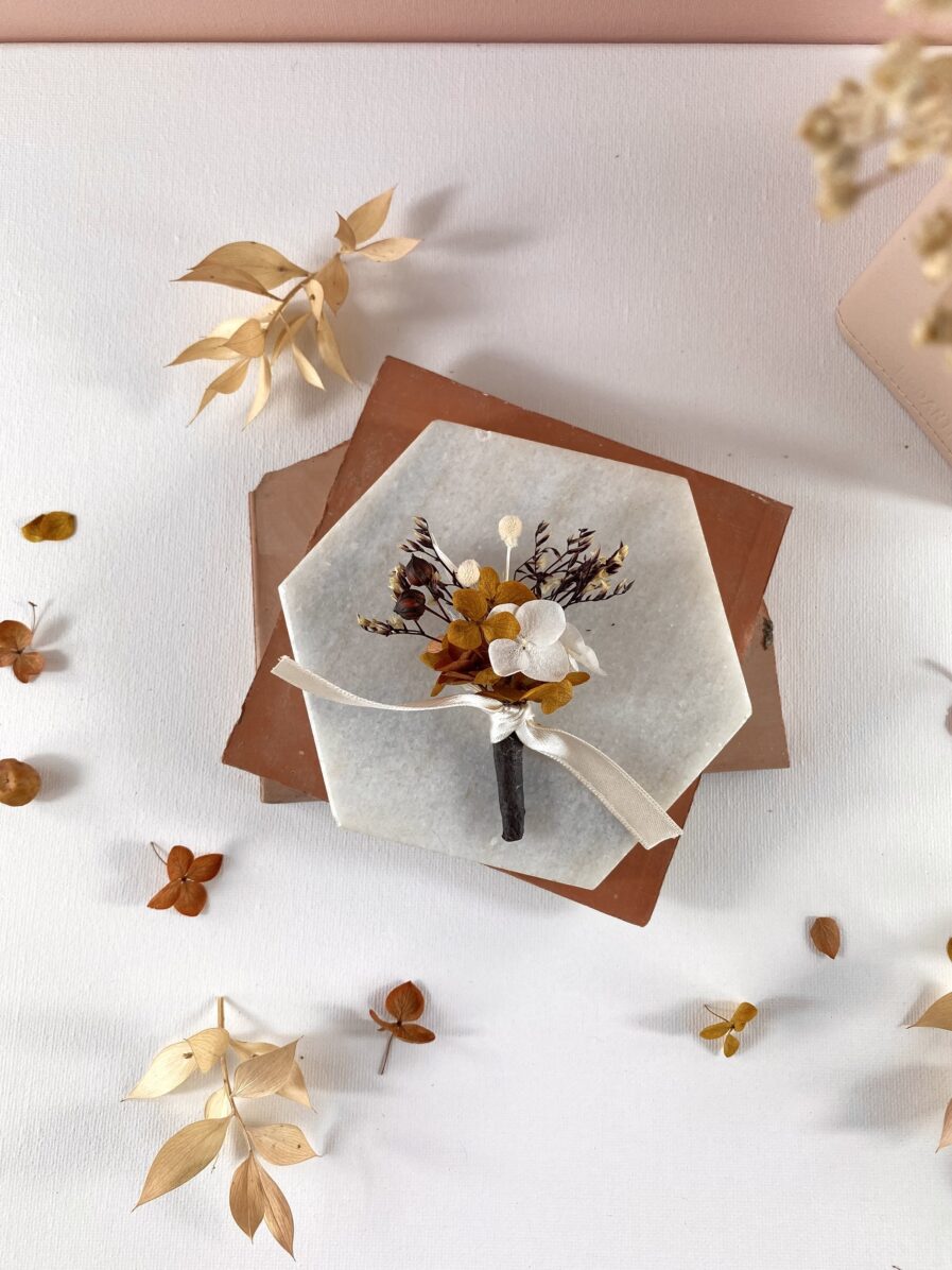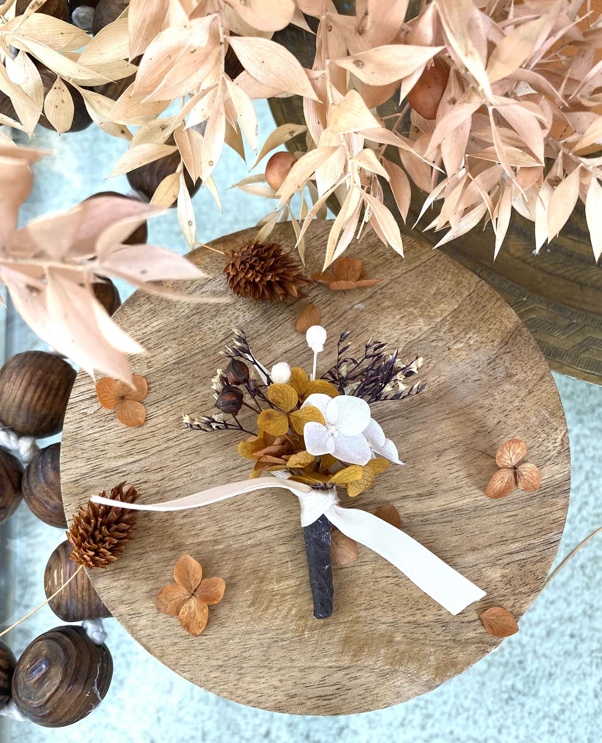 La boutonnière en fleurs stabilisées Safran : un automne lumineux