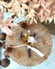 Safran met à l’honneur les tons chatoyants de l’automne, avec de doux dégradés de couleurs safran, ocre, terracotta et nude, mêlant des hortensias mini, allant du safran à l’ivoire, du limonium, et des petites fleurs séchées, comme les immortelles de couleur nude, de l’avoine blanchi et des billes de lin marron.