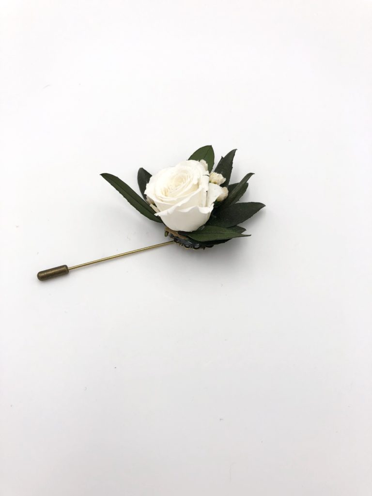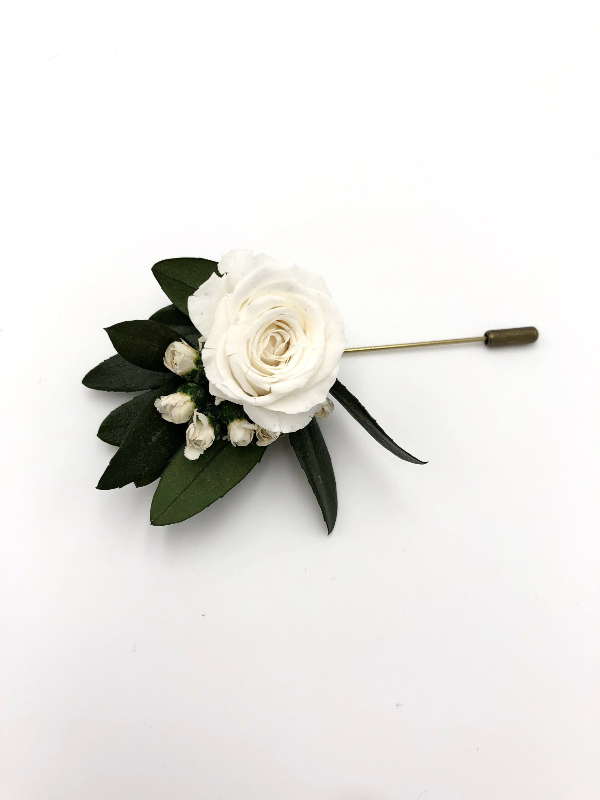 Avec son système de fermoir à broche sécurisé, très facile à mettre en place, la boutonnière en fleurs Elaia sublimera n’importe quelle tenue, sans abîmer le tissu, et conviendra aussi bien aux mariés les plus chics, qu’à leurs témoins les plus trendy, sans oublier les gentlemen de tous les jours qui souhaitent ajouter une touche de fleurs subtile à leur veste en tweed.