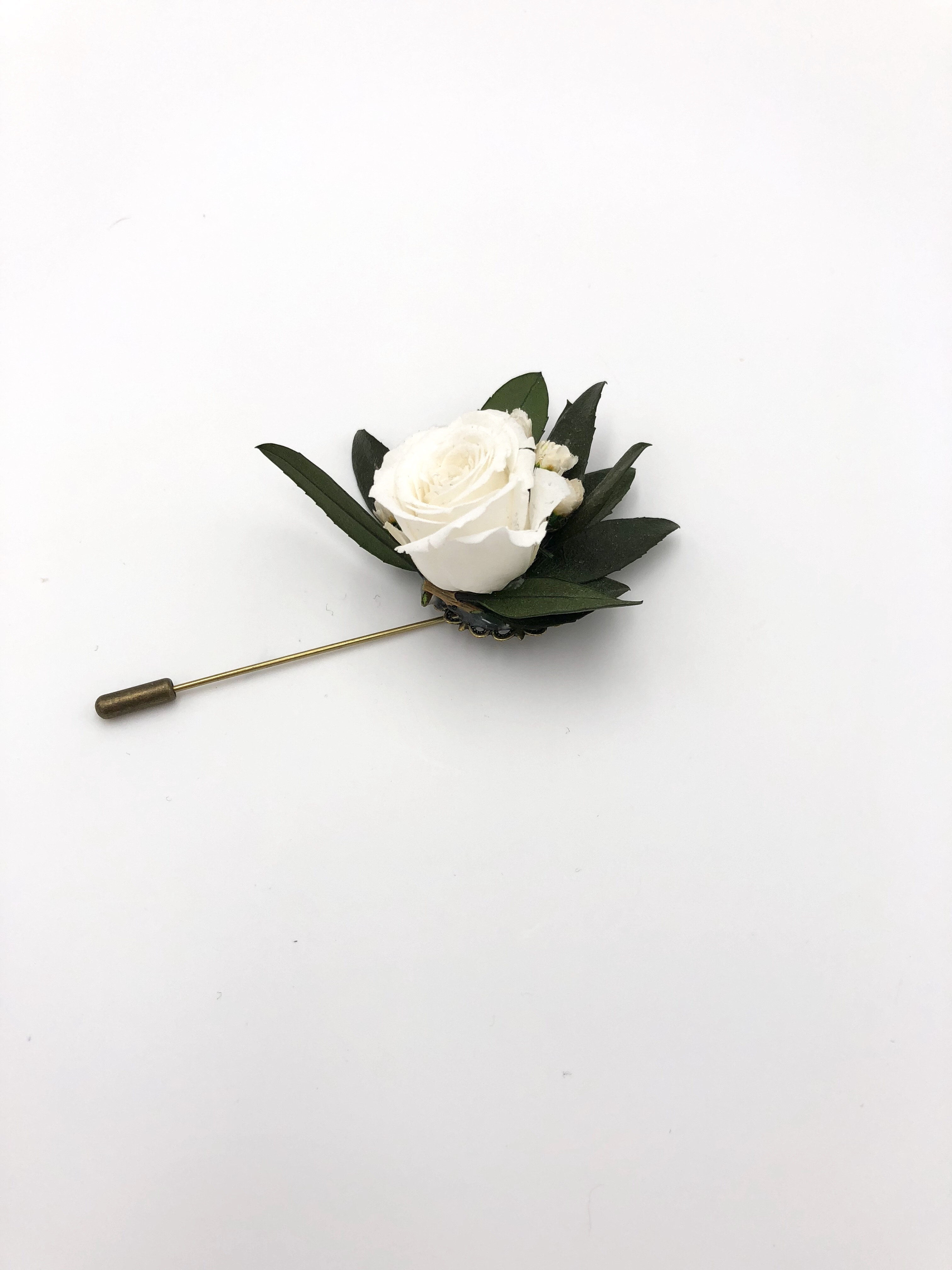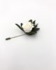 Pratique et chic, la boutonnière en fleurs Elaia, grâce à son système de broche, peut être fixée par la boutonnière de votre veste ou encore à travers le tissu. Elégante, contemporaine et intemporelle, cette broche est facile à assortir, et ajoutera un petit plus au costume avec goût.