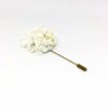 Pratique et chic, la boutonnière en fleurs Hysope, grâce à son système de broche, peut être fixée par la boutonnière de votre veste ou encore à travers le tissu. Elégante, contemporaine et intemporelle, cette épingle est facile à assortir, et ajoutera un petit plus au costume avec goût, par exemple si la mariée porte le peigne Hysope.
