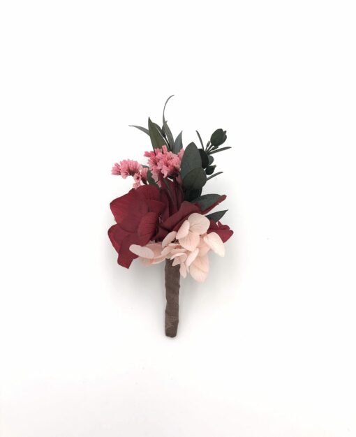 Tous les accessoires de la Box cortège carmin sont réalisés en fleurs stabilisées de haute-qualité, avec l’avantage de pouvoir se conserver plusieurs années, et donc de pouvoir commander à l’avance pour vous éviter le stress de dernière minute et ainsi offrir un joli cadeau à vos demoiselles d’honneur. Mais cela vous permettra aussi de les conserver ensuite en souvenir !