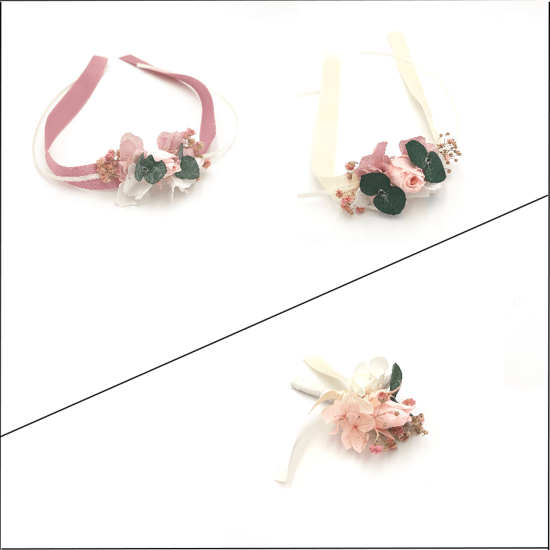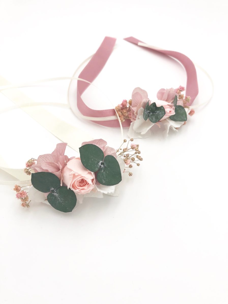Tous les accessoires de la Box cortège Confetti sont réalisés en fleurs stabilisées de haute-qualité, avec l’avantage de pouvoir se conserver plusieurs années, et donc de pouvoir commander à l’avance pour vous éviter le stress de dernière minute et ainsi offrir un joli cadeau à vos demoiselles d’honneur. Mais cela vous permettra aussi de les conserver ensuite en souvenir !