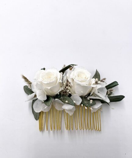 Tous les accessoires de la Box cortège Elaia sont réalisés en fleurs stabilisées de haute-qualité, avec l’avantage de pouvoir se conserver plusieurs années, et donc de pouvoir commander à l’avance pour vous éviter le stress de dernière minute et ainsi offrir un joli cadeau à vos demoiselles d’honneur. Mais cela vous permettra aussi de les conserver ensuite en souvenir !