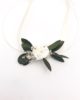 Vous pourrez ainsi facilement être assortie à l’ensemble de votre cortège, si vous portez par exemple la couronne Elaia ou le peigne, et que vos demoiselles d’honneur arborent les rubans, avec les témoins ou le marié portant une boutonnière.