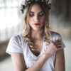 Le nom confetti provient de l’italien et signifie dragée, ce qui correspond parfaitement à la couronne de fleurs et à la collection, avec ses tons pastels très doux, et ses fleurs en guise de friandises, le tout dans un esprit de joie et de fête propre au mariage.