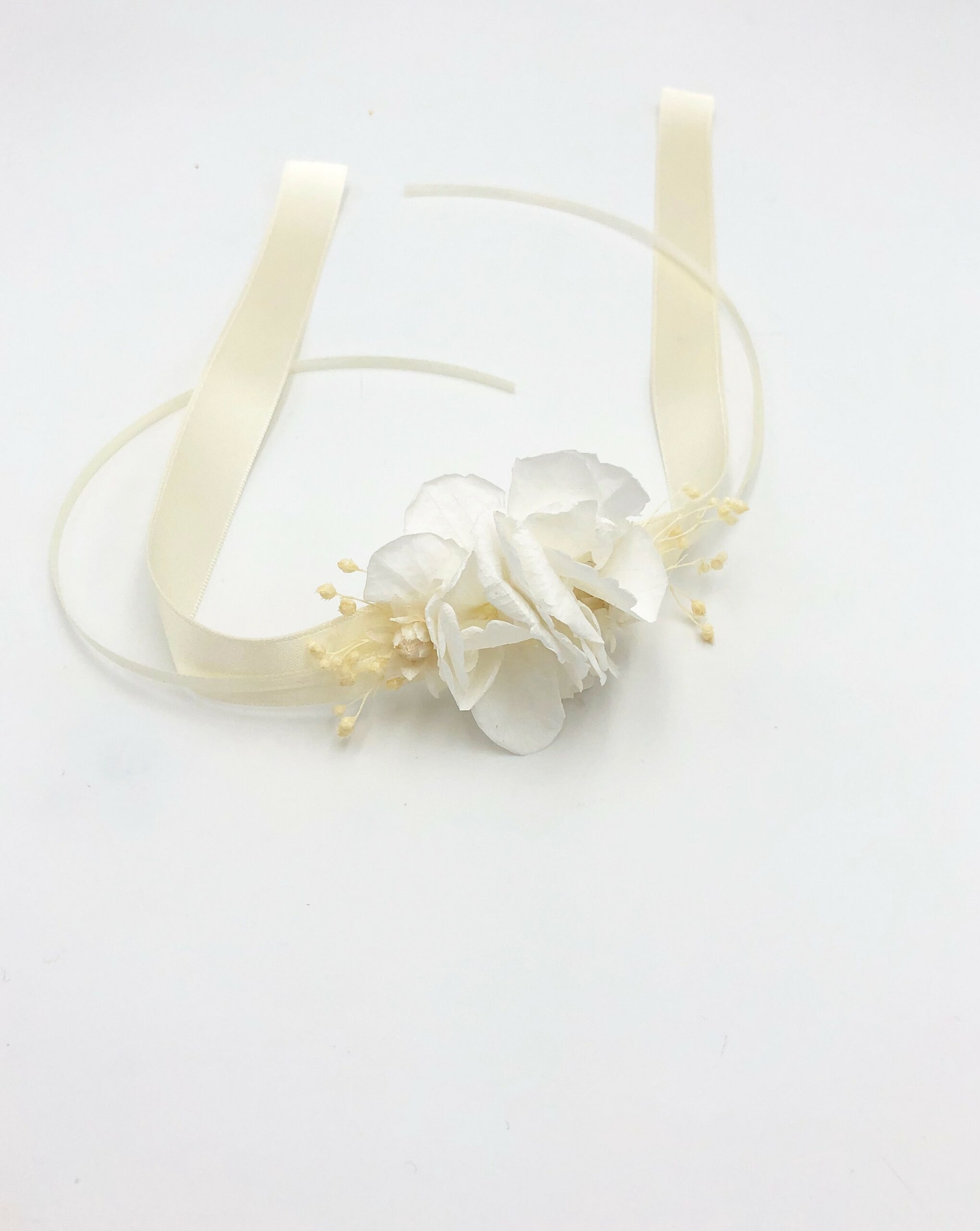 Le bracelet de demoiselles d’honneur Candide s’inscrit dans le même esprit que la collection du même nom : délicate, pure et blanche, à la fois immaculée et ivoire.