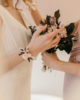 Il permet à la demoiselle d’honneur ou à l’invitée d’un mariage d’arborer de belles roses stabilisées, ce qui offre la touche féminine et romantique idéale pour ce grand jour, l’eucalyptus apportant un coté frais et sophistiqué. Ces bracelets seront parfaits associés au peigne Lima de la mariée.