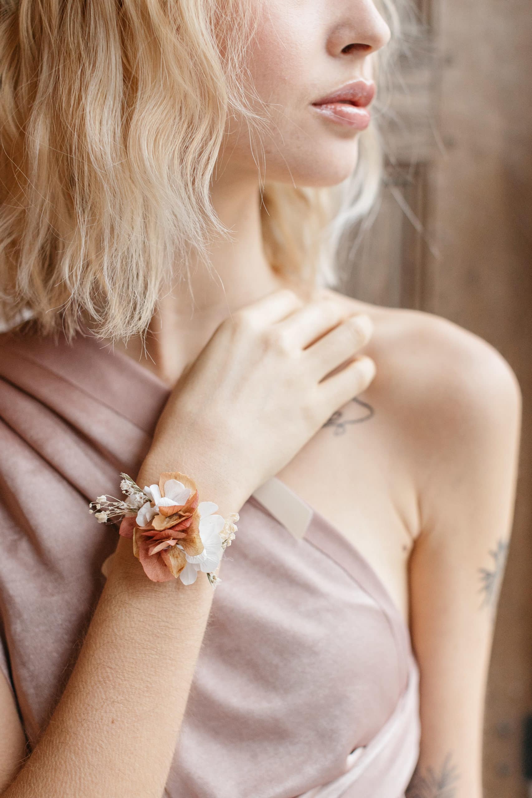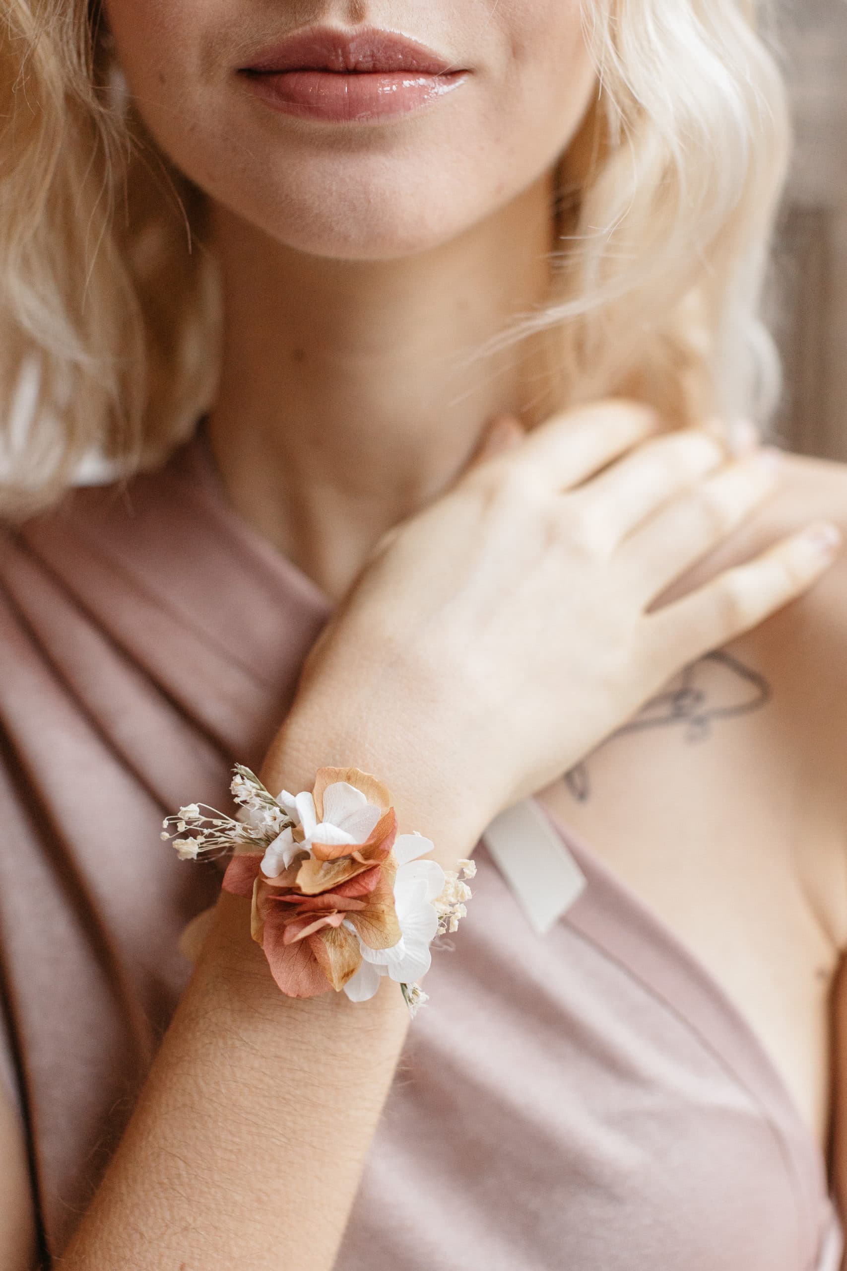 Le bracelet en fleurs stabilisées Blush : l’accessoire des demoiselles d’honneur romantiques