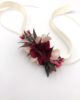 Le bracelet en fleurs stabilisées Carmin fait partie de la gamme du même nom, Carmin, dévoilée pour les mariages de 2020. Cet accessoire de fleurs naturelles est destiné aux demoiselles d’honneur et aux invitées souhaitant une touche de bordeaux dans leur mariage. Ces bracelets leur permet en effet d’être assorties à l’accessoire et la tenue de la mariée avec une touche de bordeaux.