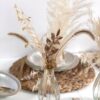 - Fleurs stabilisées et séchées naturelles (pampa, ruscus, palme, asparagus, achillée, sétaire, gypso, fougère…)