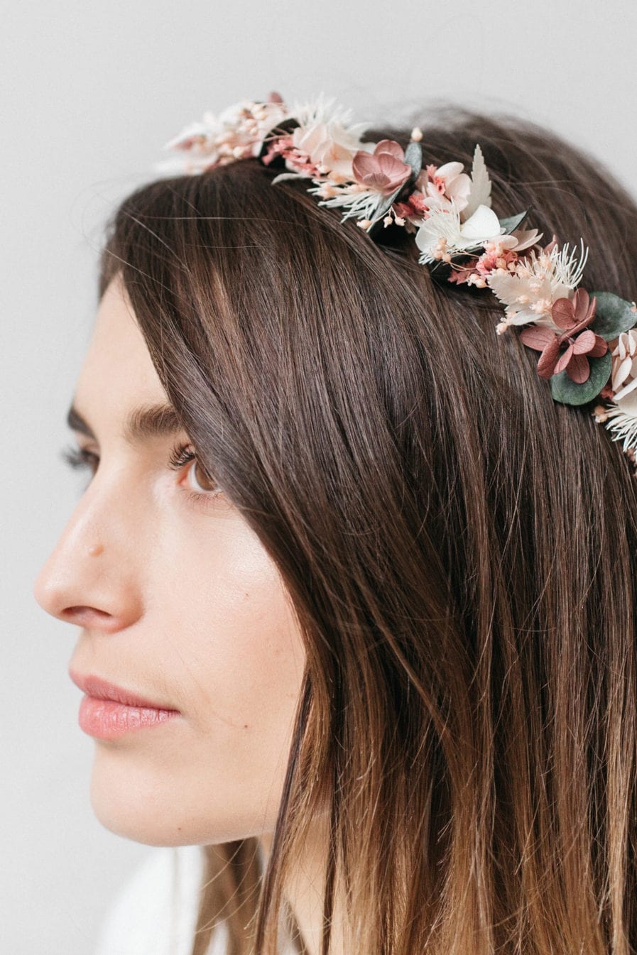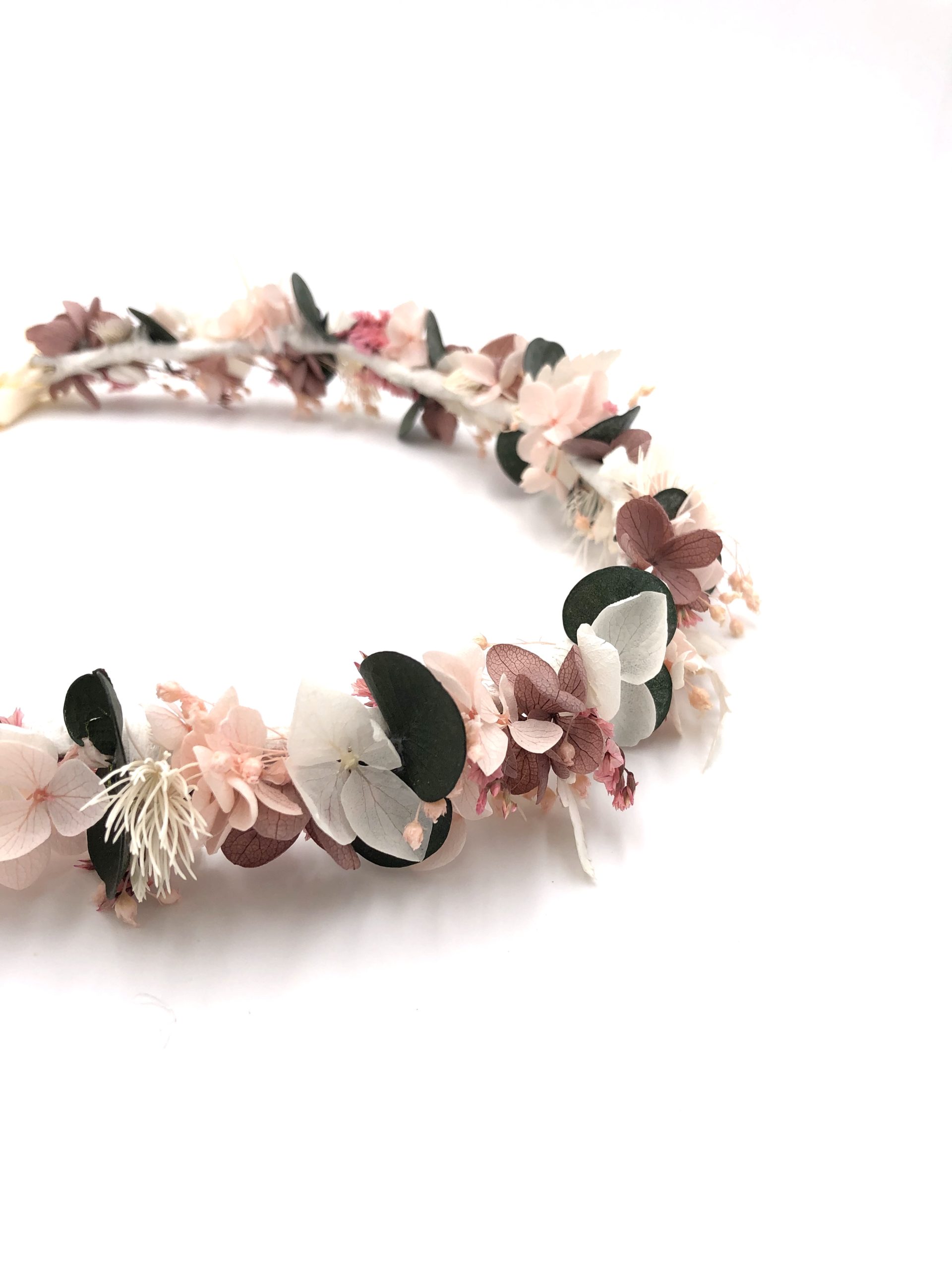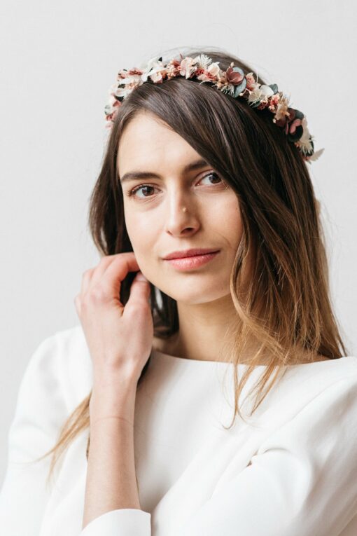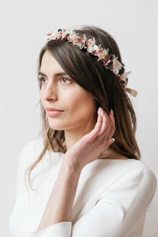 La couronne de fleurs stabilisées Tourmaline : une couronne romantique et naturelle