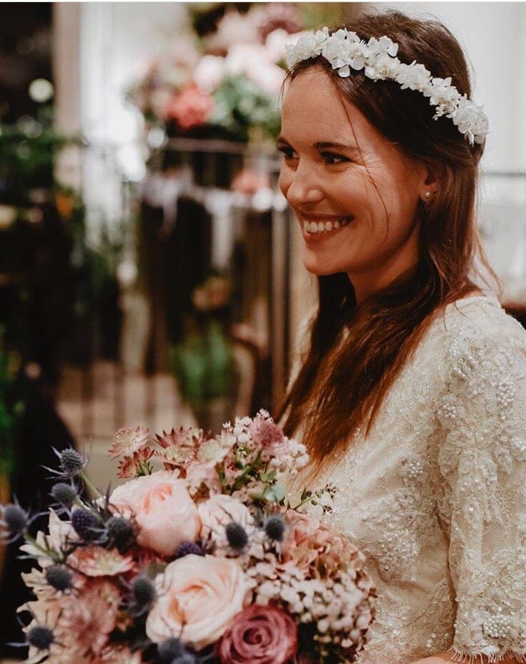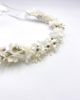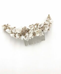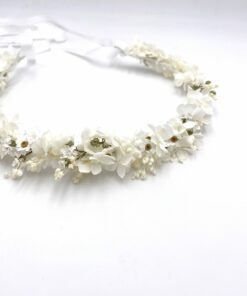 La couronne de mariage Candide évoque douceur, élégance et délicatesse, avec ses petites fleurs d’ixodia entremêlées d’Hortensia mini, alliant avec goût les tons blancs et ivoire. Elle est, avec la couronne Immortelle, la digne représentante de l’accessoire classique et chic, pur et blanc, représenté par la Collection Immaculée. Cette collection et cette couronne de fleurs intemporelle est un indémodable et un grand classique des Fleurs Dupont, qui a déjà conquis de nombreuses mariées. Sa simplicité, sa douceur et son côté immaculé en font un accessoire de cheveux idéal pour un mariage aux tons blancs et ivoire.