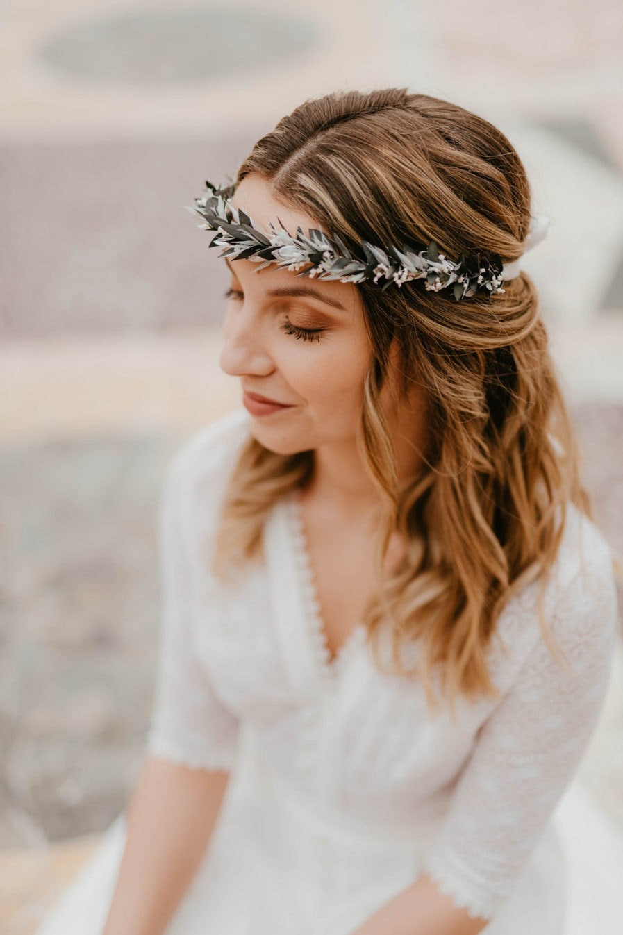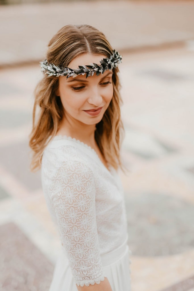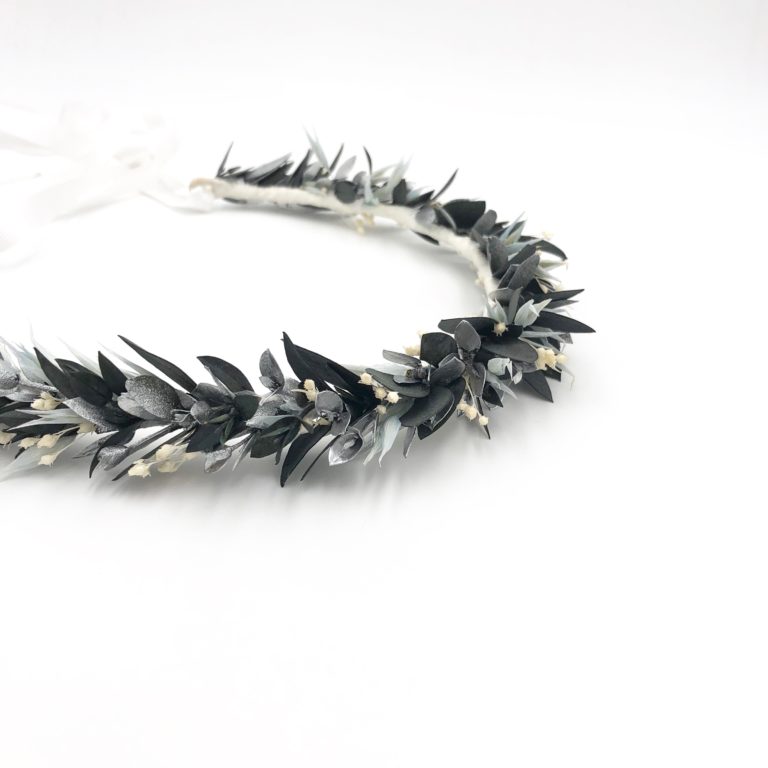 Alors que de nombreux mariages mettent en avant des thématiques aux couleurs bleues, s’alliant parfaitement à des décorations de fleurs séchées avec echinops, ou avec le costume du marié, la couronne de fleurs Turquin vient à point nommé. Prenant son nom du marbre turquin, un type de marbre très recherché aux reflets bleutés, la gamme Turquin se veut résolument chic et moderne. Convenant aussi bien aux mariages d’hiver aux tons glacés, qu’aux mariages de printemps-été pour une touche rafraîchissante et élégante, cet accessoire de fleurs saura magnifier une tenue.