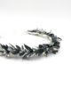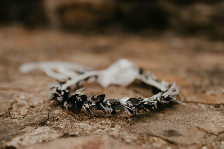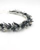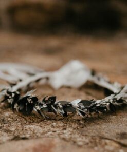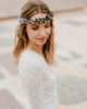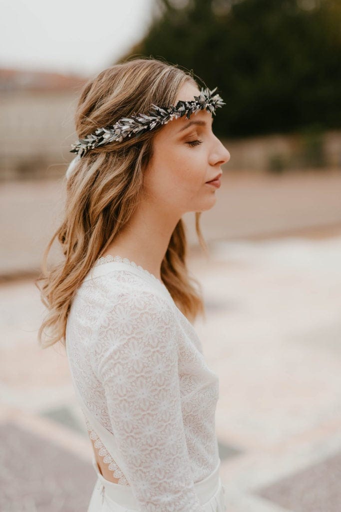 Malgré son apparence presque figée de cristaux et de métal, la couronne de mariage Turquin se compose exclusivement de fleurs séchées et de fleurs stabilisées, mêlant eucalyptus, avoine ou encore broom. C’est un accessoire en fleurs qui sera d’autant plus apprécié s’il est assorti à d’autres de la même gamme, notamment pour le marié, avec sa boutonnière, et pour les demoiselles d’honneur, avec des bracelets dédiés.