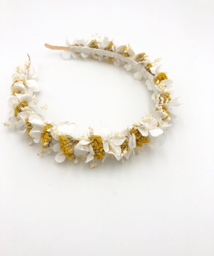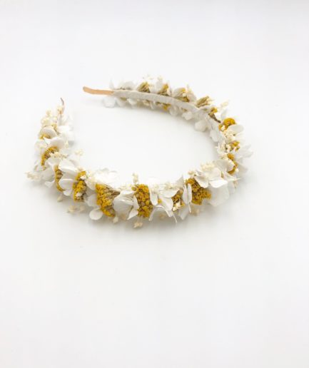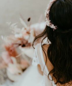 Comme nos autres accessoires pour la mariée, cette couronne se compose de fleurs 100% naturelles durables, stabilisées et séchées, qui offrent des avantages en matière de conservation, allant de plusieurs mois à plusieurs années. Pratique pour commander quelques mois avant, et pour la conserver ensuite en souvenir des années.
