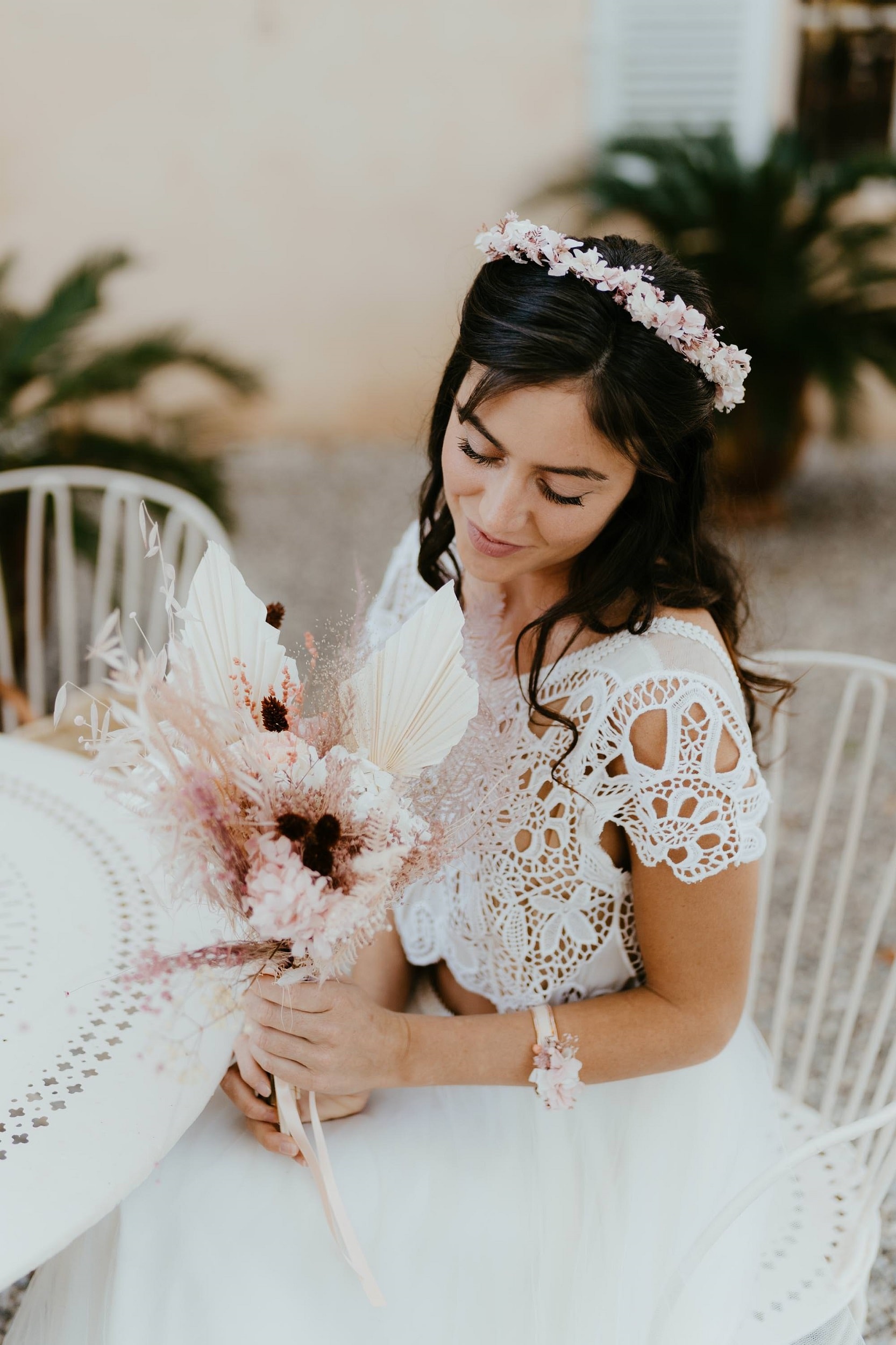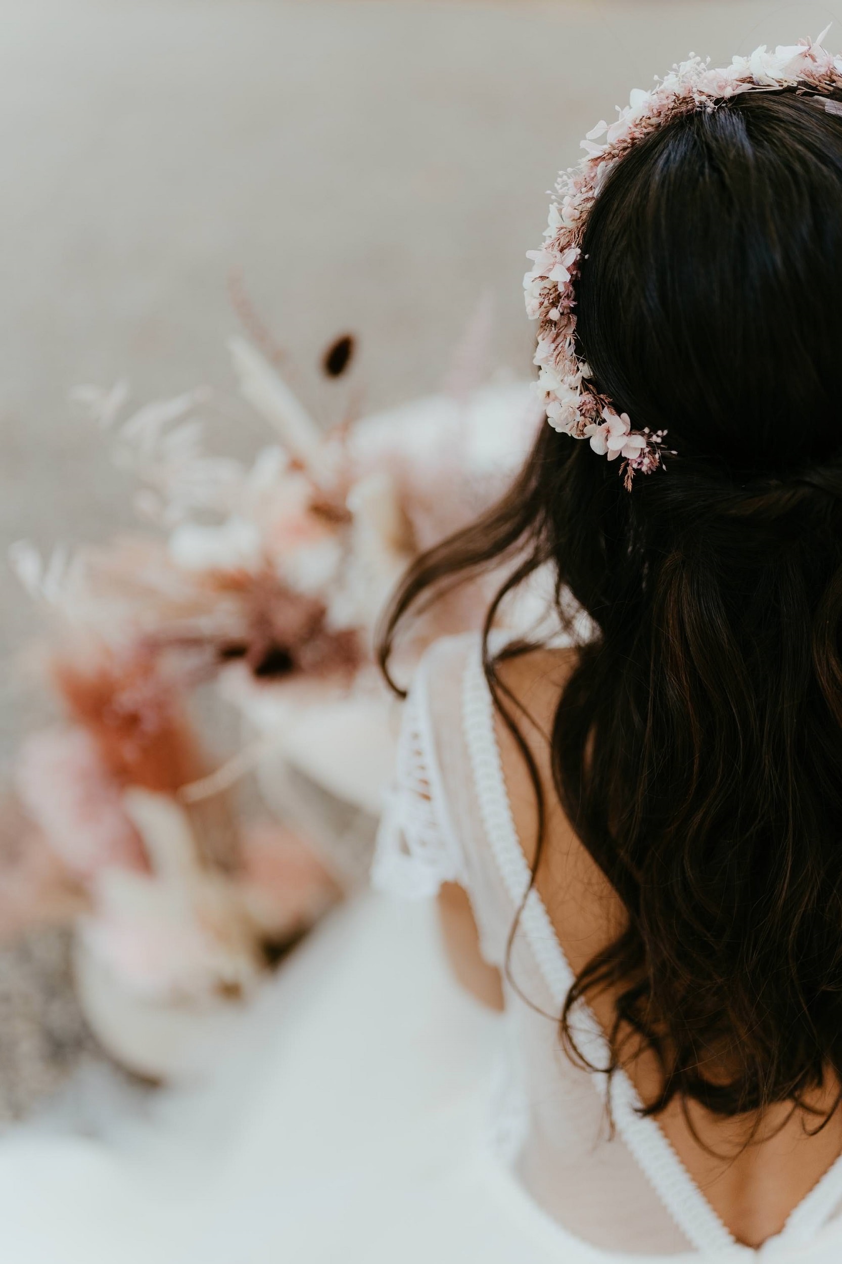 La couronne en fleurs stabilisées et séchées Chérie : romantique et bohême
