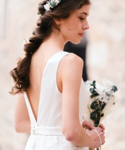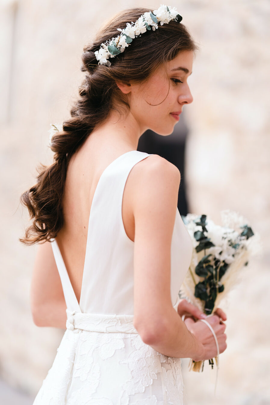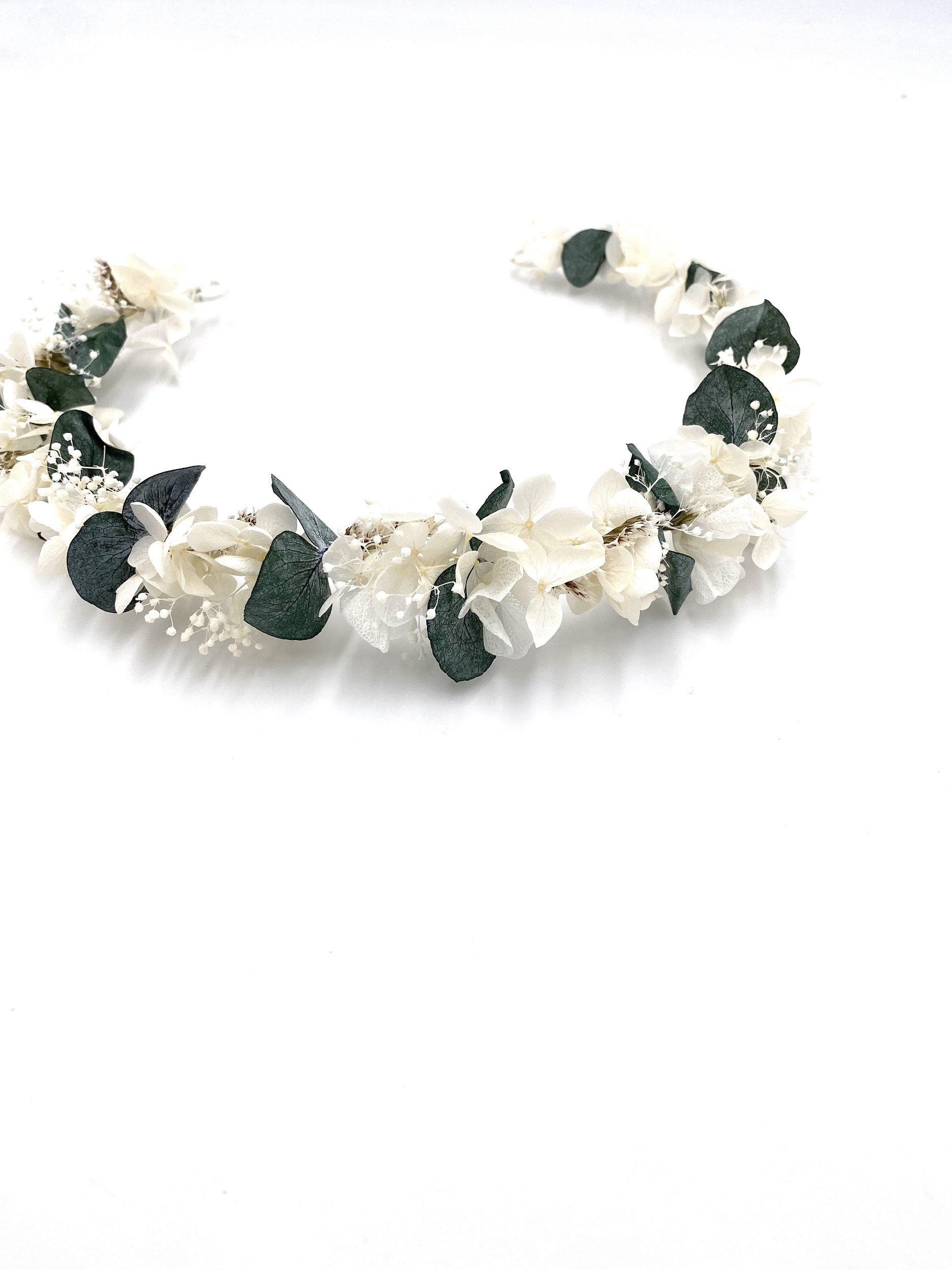 Comme nos autres accessoires pour la mariée, cette couronne se compose de fleurs 100% naturelles durables, stabilisées, qui offrent des avantages en matière de conservation, allant de plusieurs mois à plusieurs années. Pratique pour commander quelques mois avant, et pour la conserver ensuite en souvenir des années.