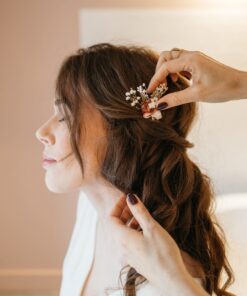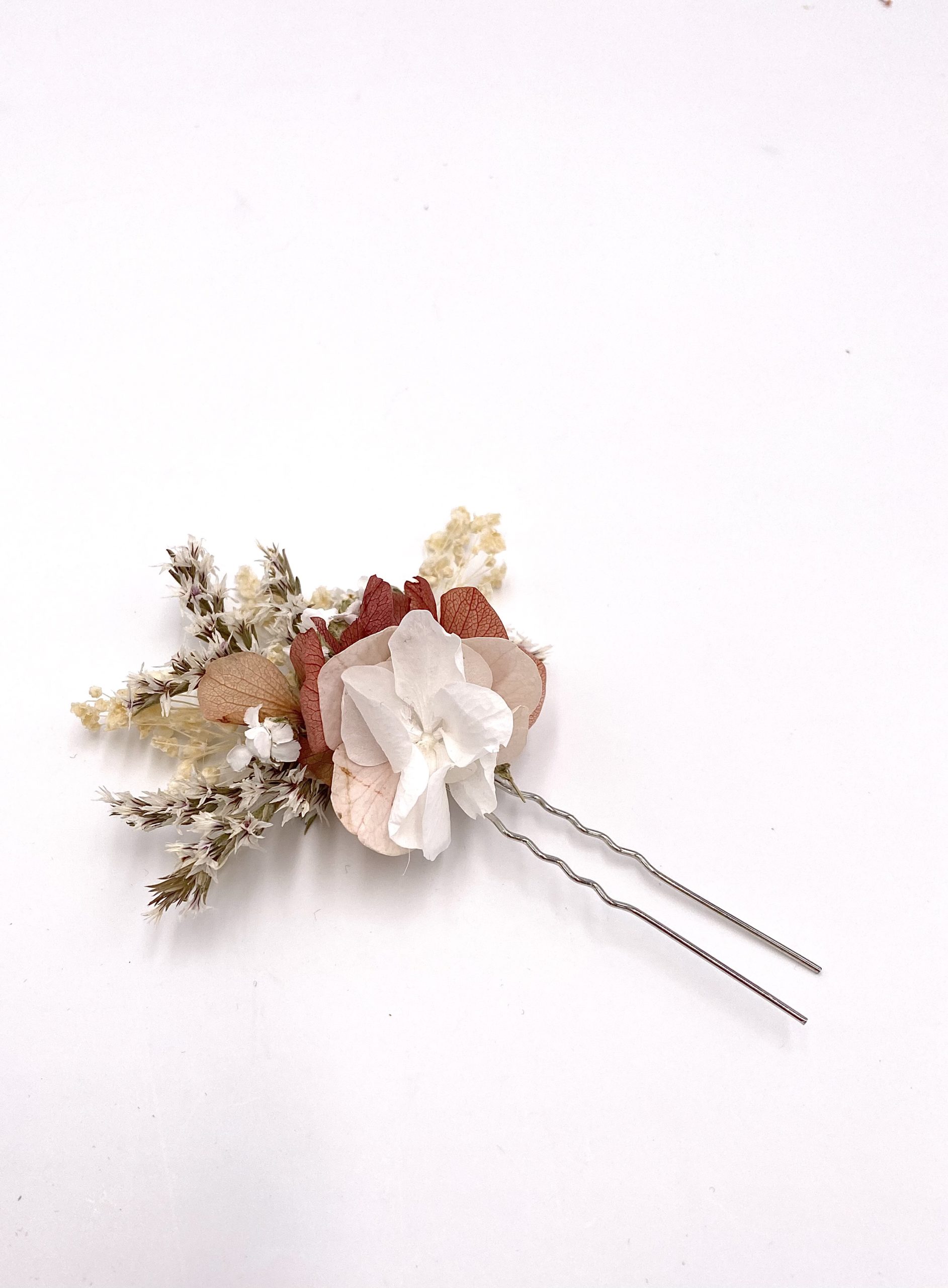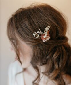 Comme nos autres accessoires pour la mariée, ce pic se compose de fleurs 100% naturelles durables, stabilisées et séchées, qui offrent des avantages en matière de conservation, allant de plusieurs mois à plusieurs années. Pratique pour commander quelques mois avant, et pour la conserver ensuite en souvenir des années.
