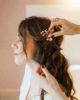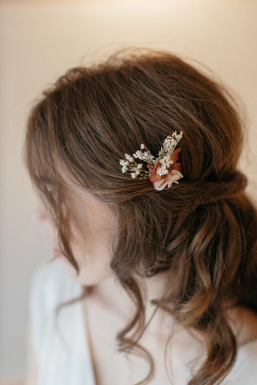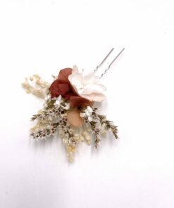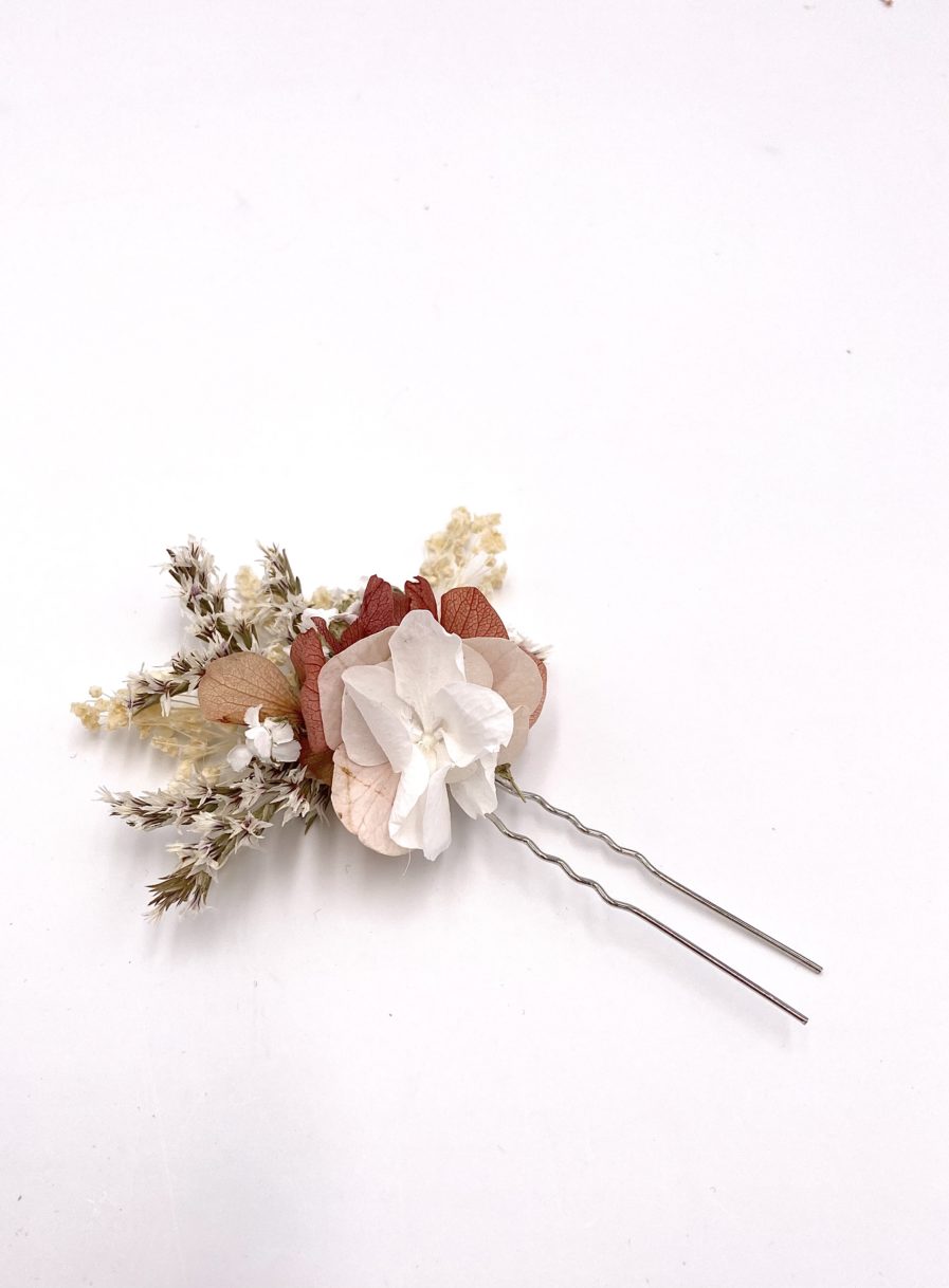 C’est un accessoire nouveau qui séduit par son côté pratique : petite touche fleurie plate, elle est idéale pour habiller le côté d’une coiffure par exemple. C’est une alternative intéressante au mini peigne.