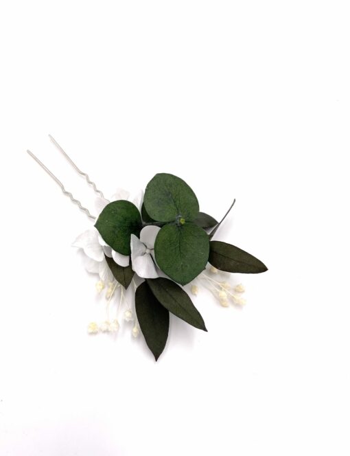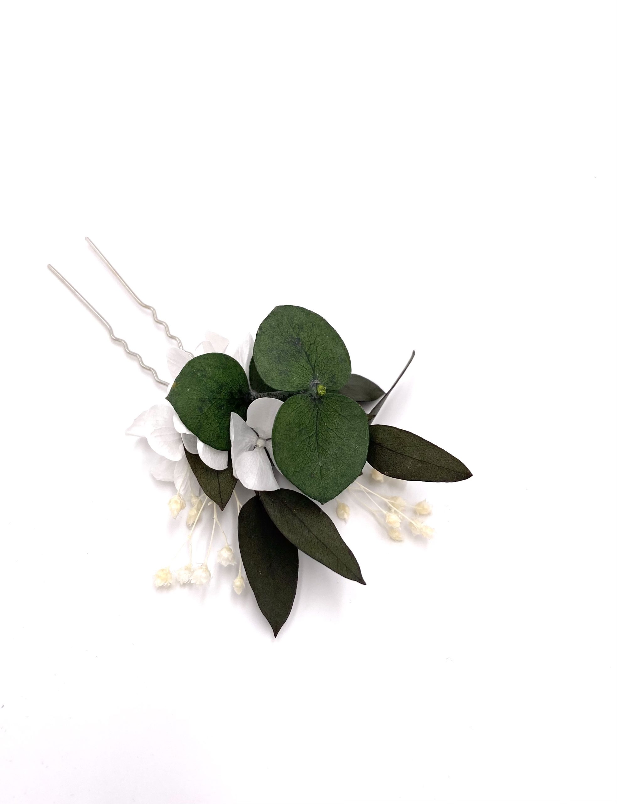 - Fleurs stabilisées (feuilles d’eucalyptus parvifolia et baby blue, hortensia)